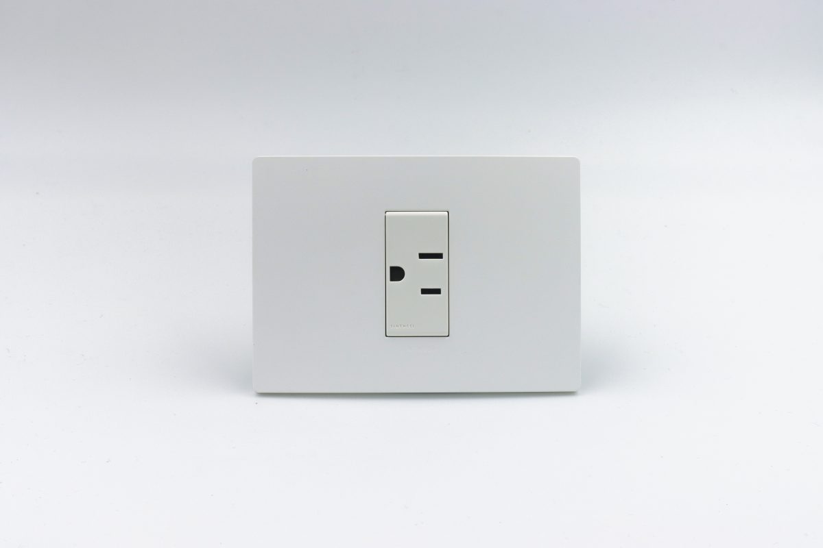 TOMACORRIENTE SIMPLE AMERICANO S33 PLACA BLANCA MATE Y DADOS S22 BLANCOS SINTHESI