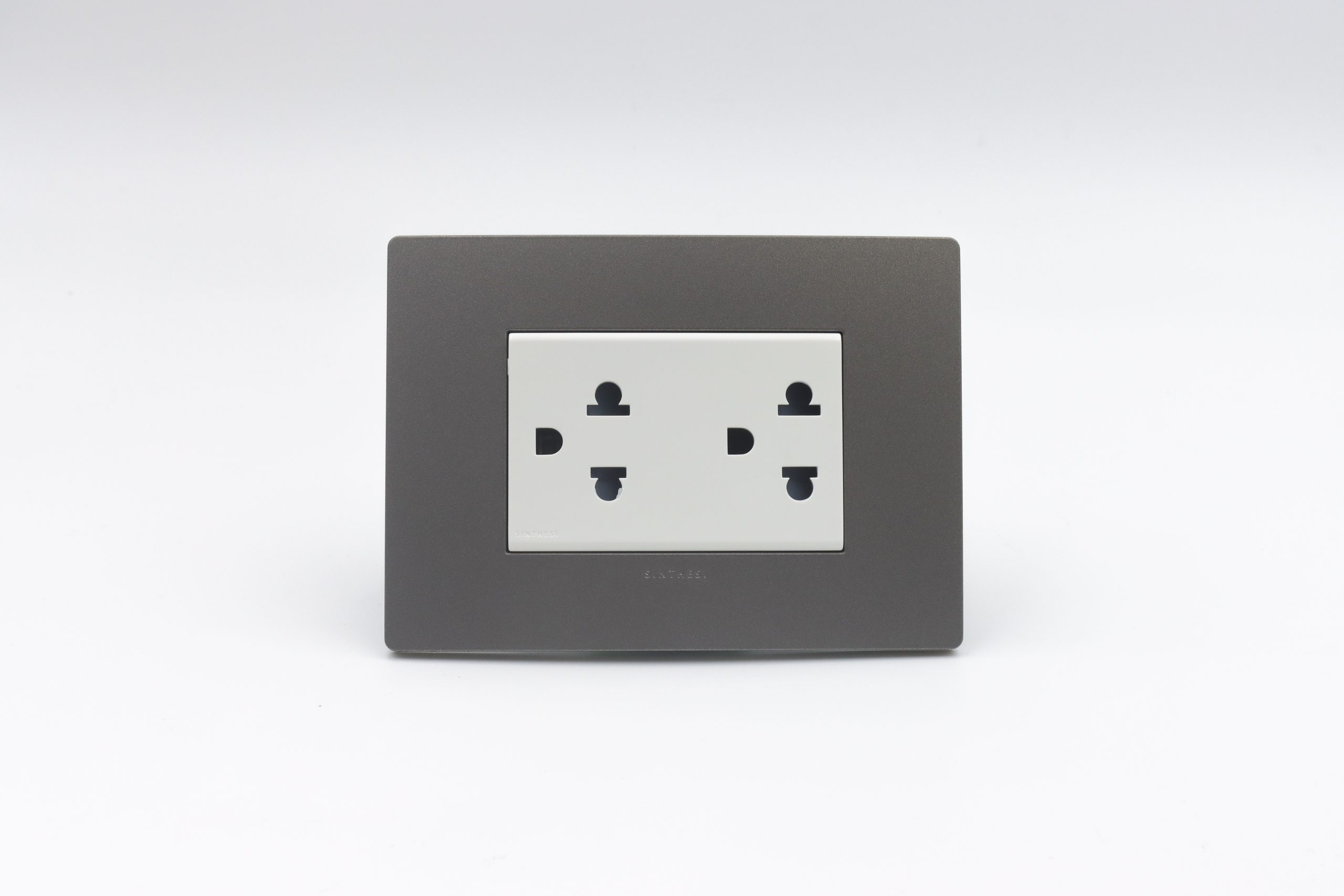 TOMACORRIENTE DUPLEX UNIVERSAL CON TIERRA S33 PIEDRA Y DADO S22 BLANCO SINTHESI